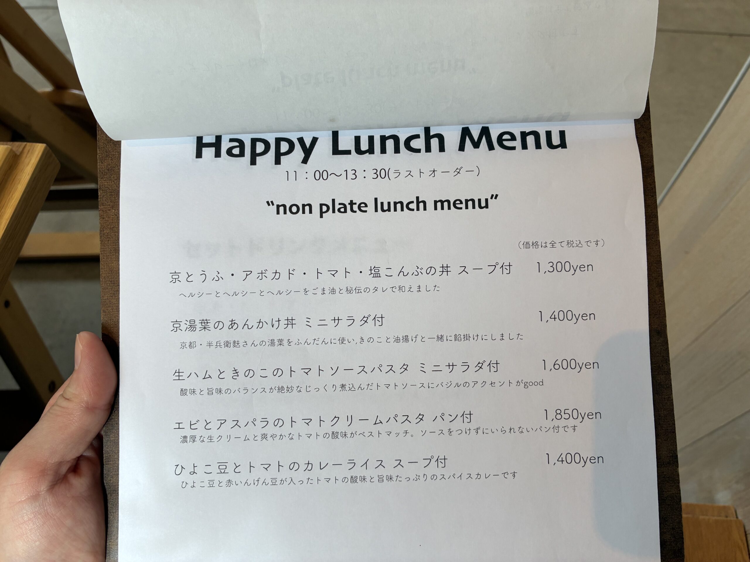 こちらがランチメニューです。
