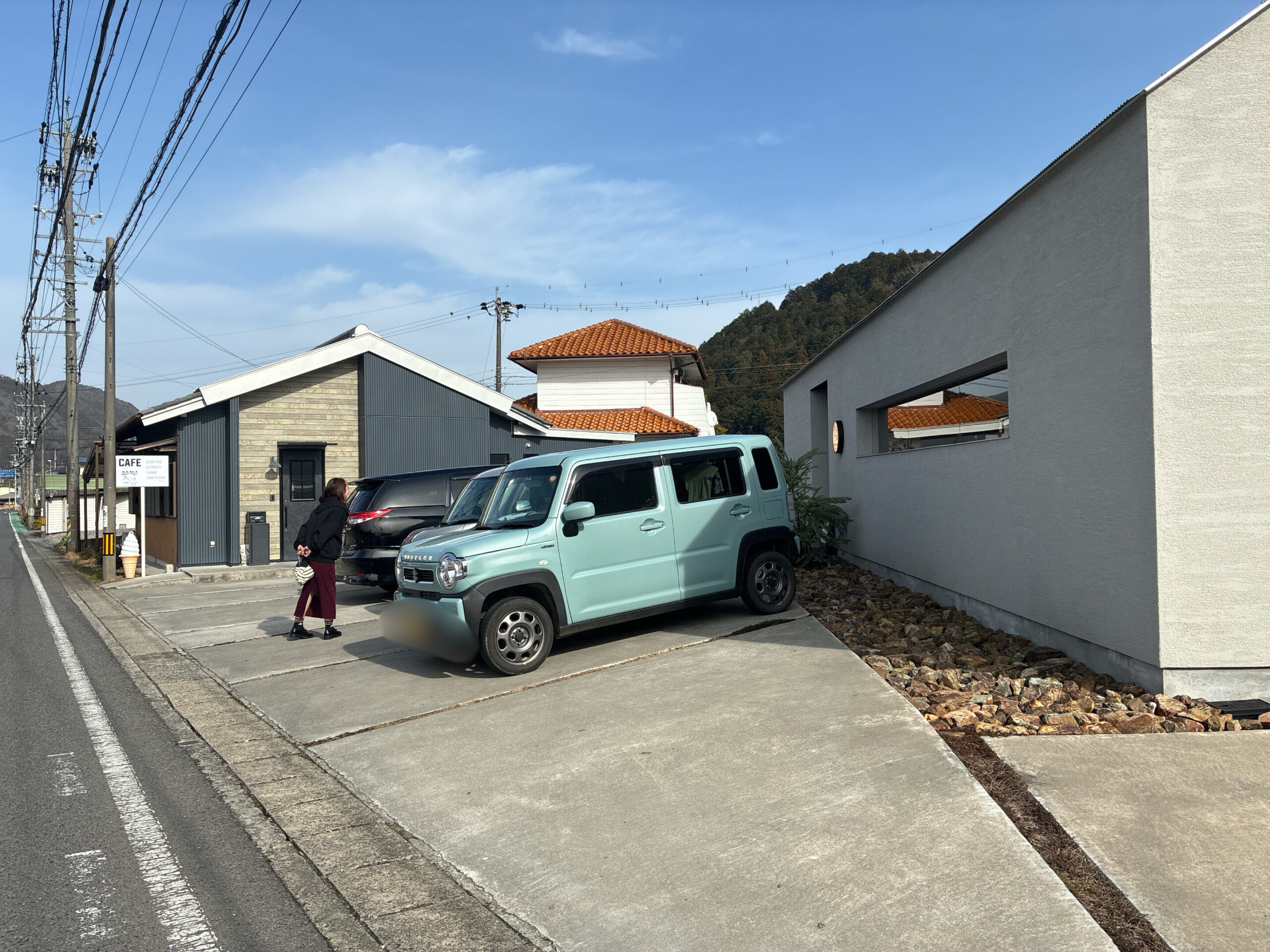 お店のインスタグラムに「左側2箇所は縦に2台停めれますのでお連れ様同士、別々のお車でお越しの際は出来れば縦に停めていただければと思います。」とありました。