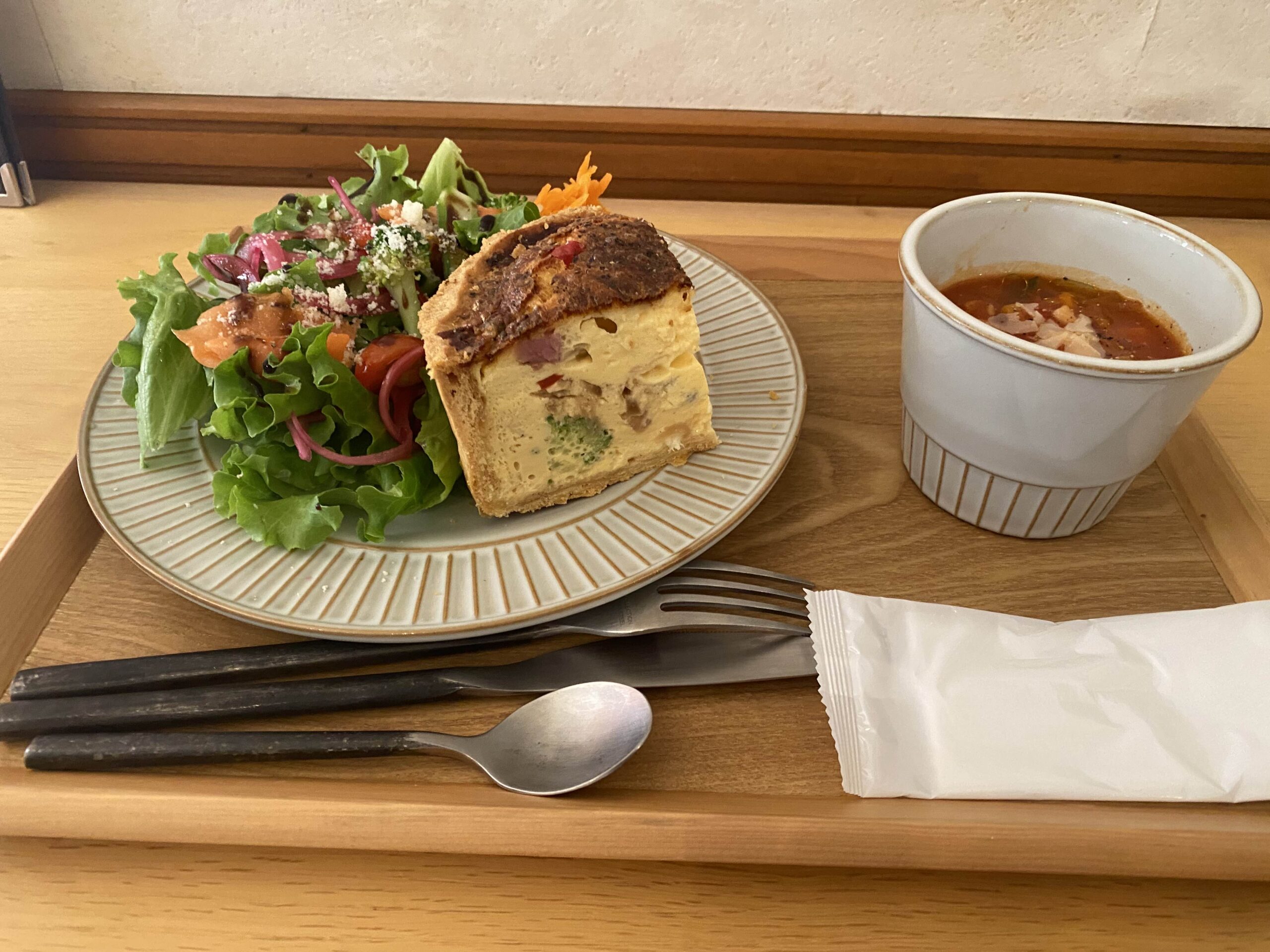 今回は『キッシュプレートとケーキセット1,900円』を頼みました。ドリンクもついています。