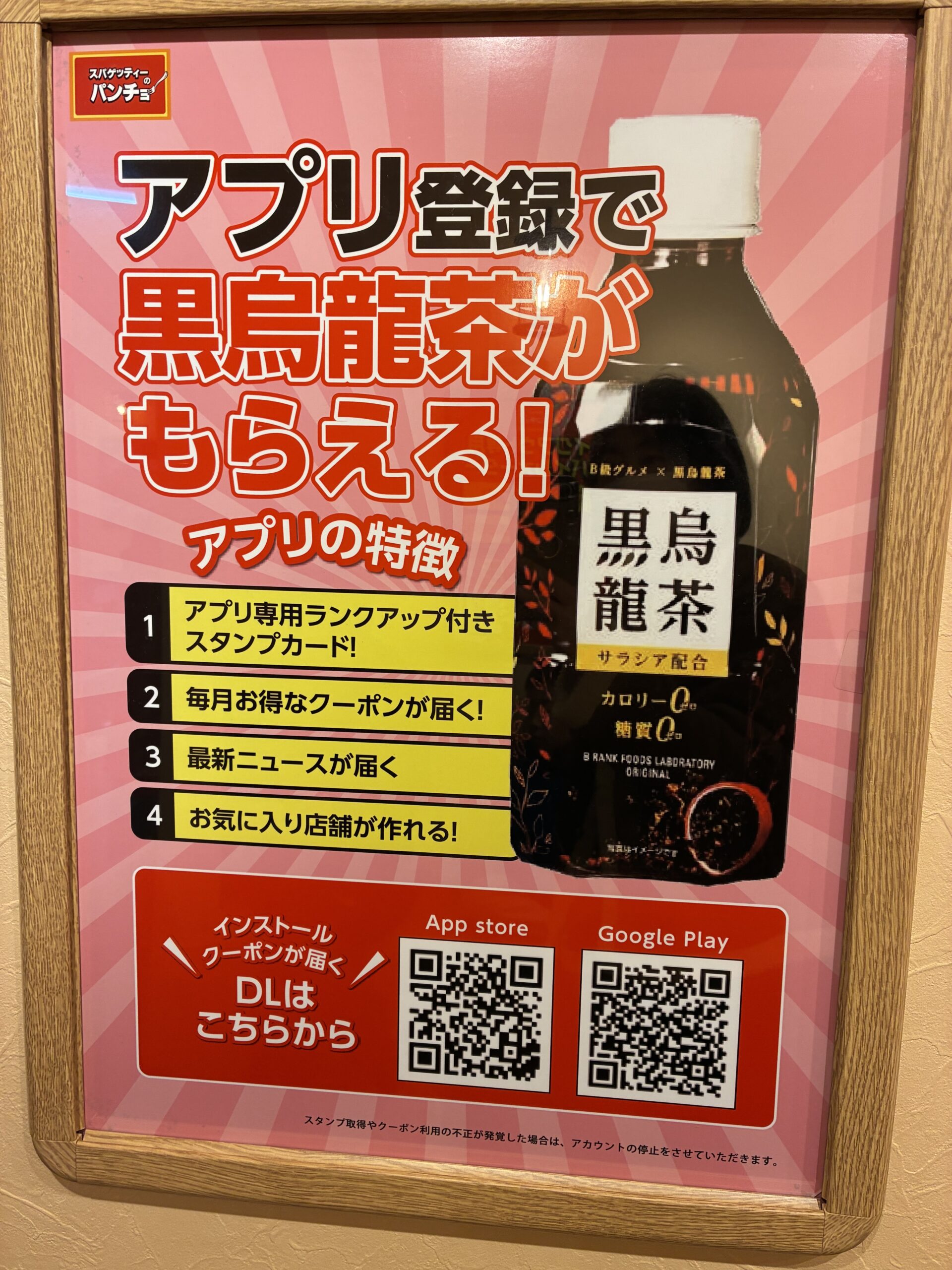現在パンチョでは、アプリを登録で黒烏龍茶がもらえるキャンペーンを行っています。