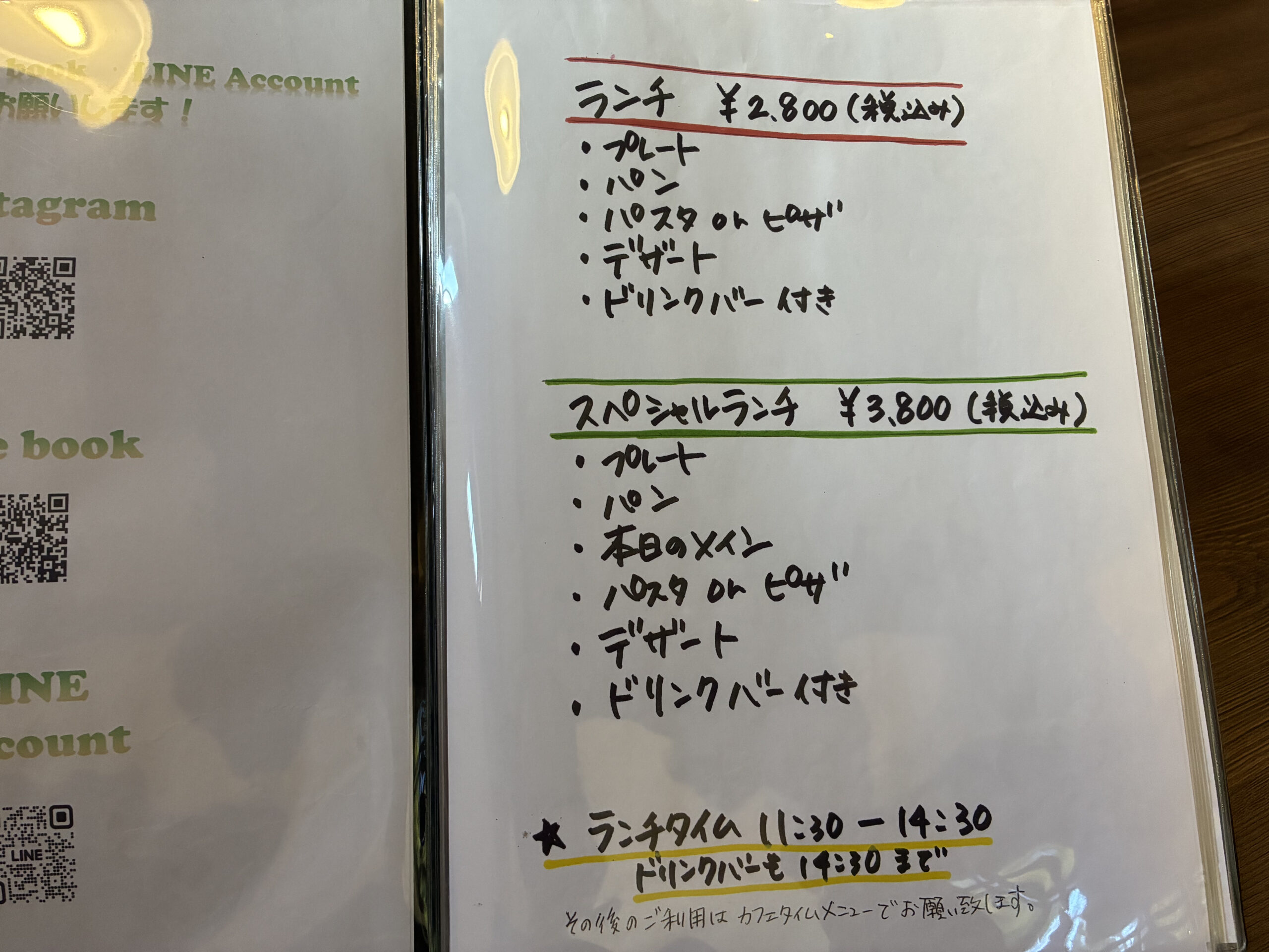 ランチのメニューはこちら