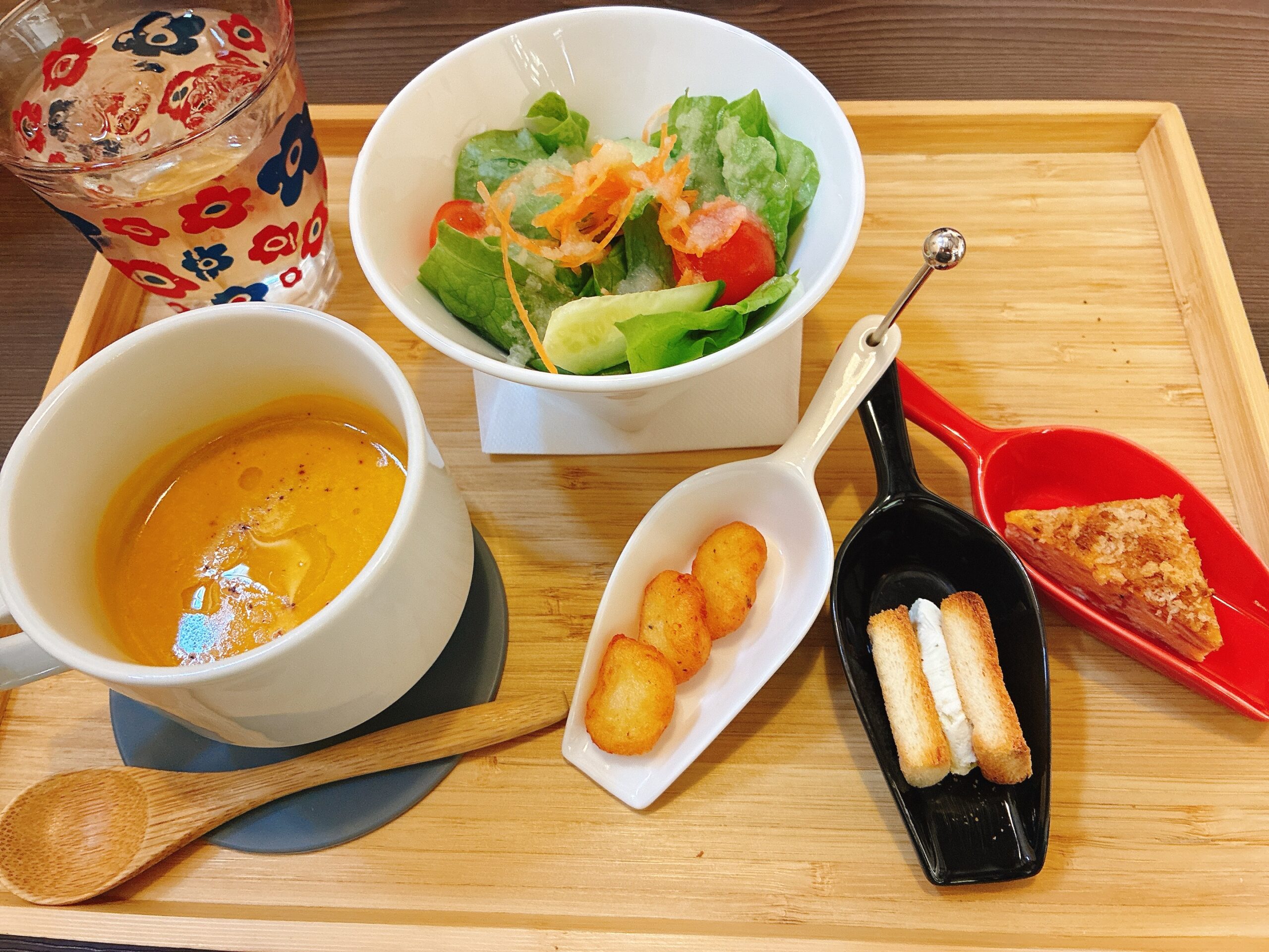 スープは確かオニオンコンソメっぽい感じで、あとサラダもついてて、お子ちゃまもぱくぱく食べてました♫